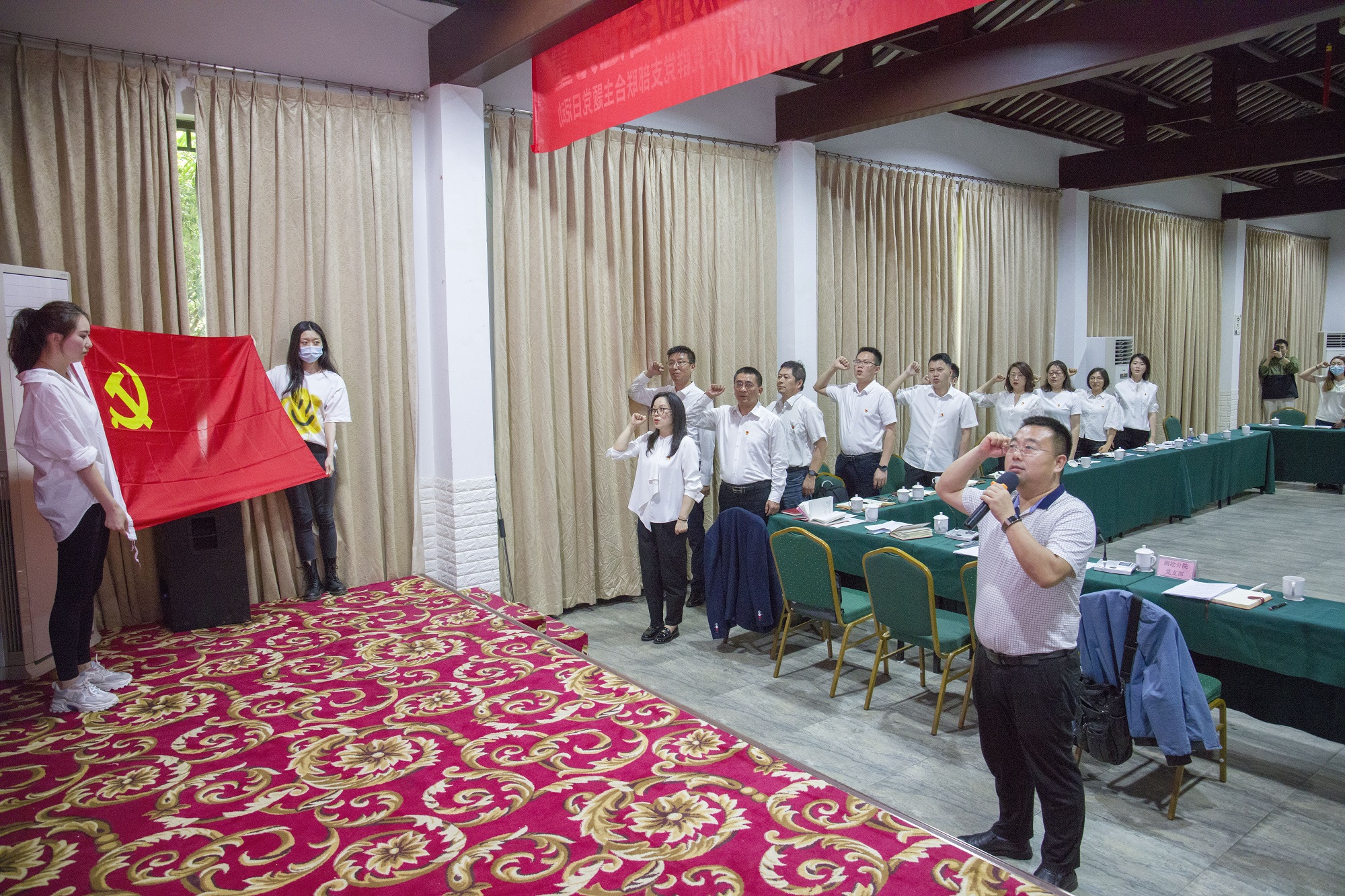 本次聯(lián)合主題黨日活動由測繪分院黨支部書記肖文全主持,他首先帶領(lǐng)雙方支部的全體黨員重溫了入黨誓詞。